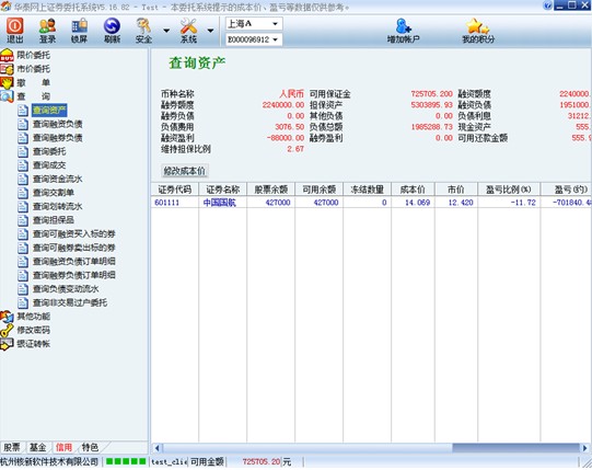 显示信用账户资产情况。
