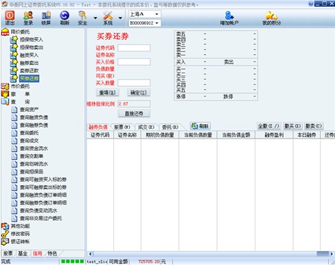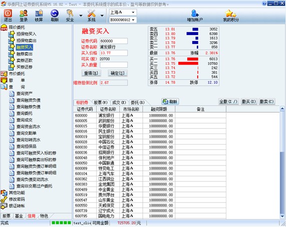 使用融资融券功能模块需要到营业部签署融资融券业务开通协议,并且开设单独信用证券账户和信用资金账户。信用交易和普通交易的资金账户同属于一个客户号,如果用户要同时使用信用交易和普通交易,必须使用客户号进行登录。